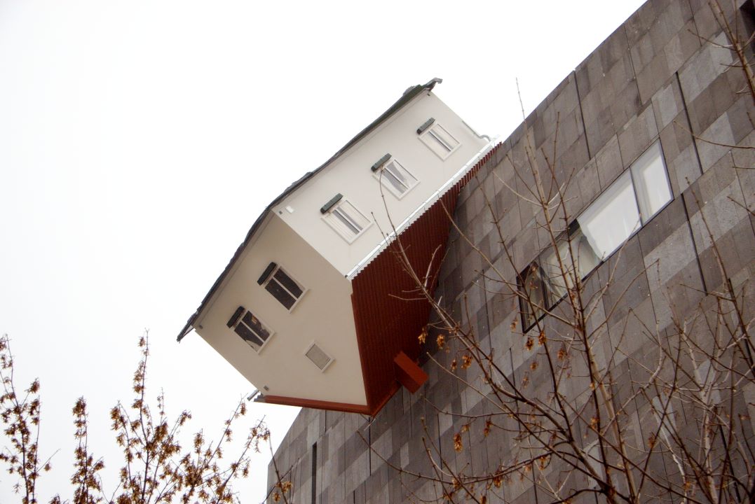 "House attack" von Erwin Wurm (Die Skulptur, die vom Himmel fiel) Fotos und Filme