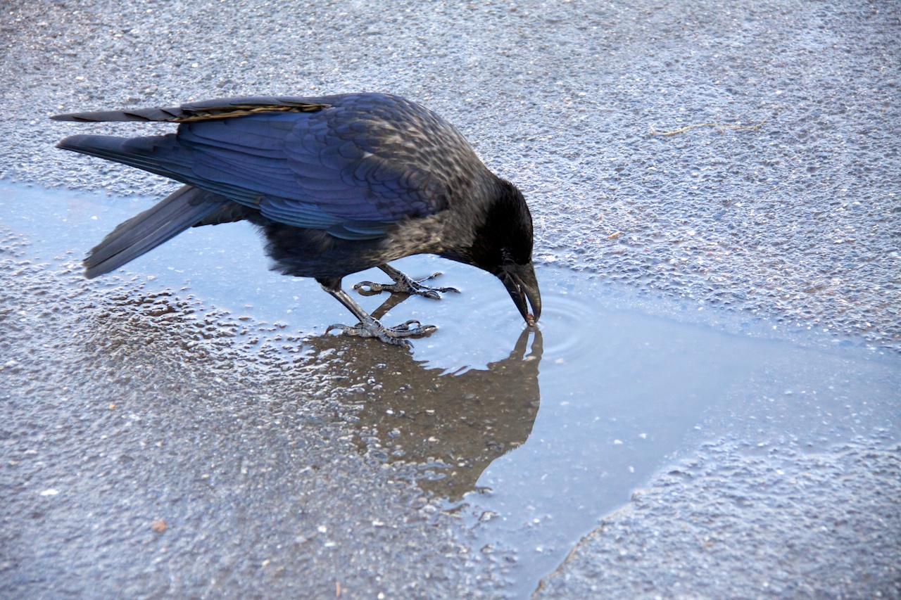 Krähe beim Trinken