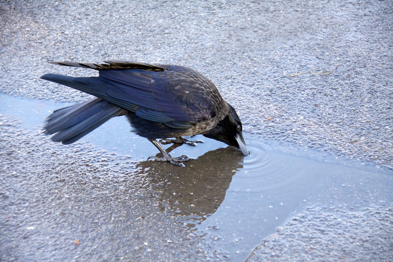 Krähe beim Trinken